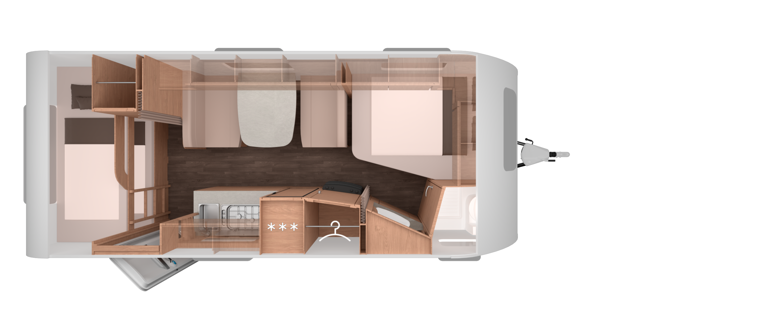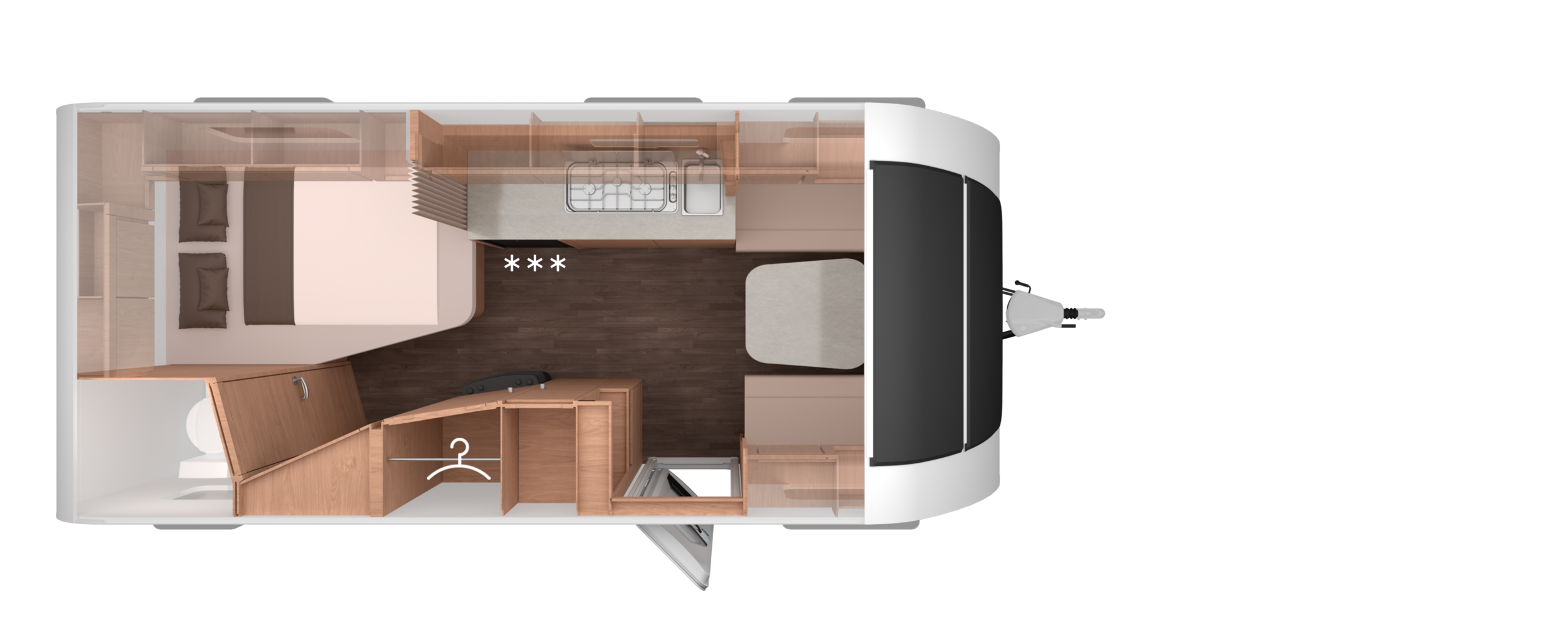 Knaus Sport on suunniteltu käytännöllisyyttä ja kestävyyttä silmällä pitäen. Sen aerodynaaminen muotoilu, kevyt rakenne ja vahva alusta tekevät siitä helpon vedettävän ja energiatehokkaan matkakumppanin.
