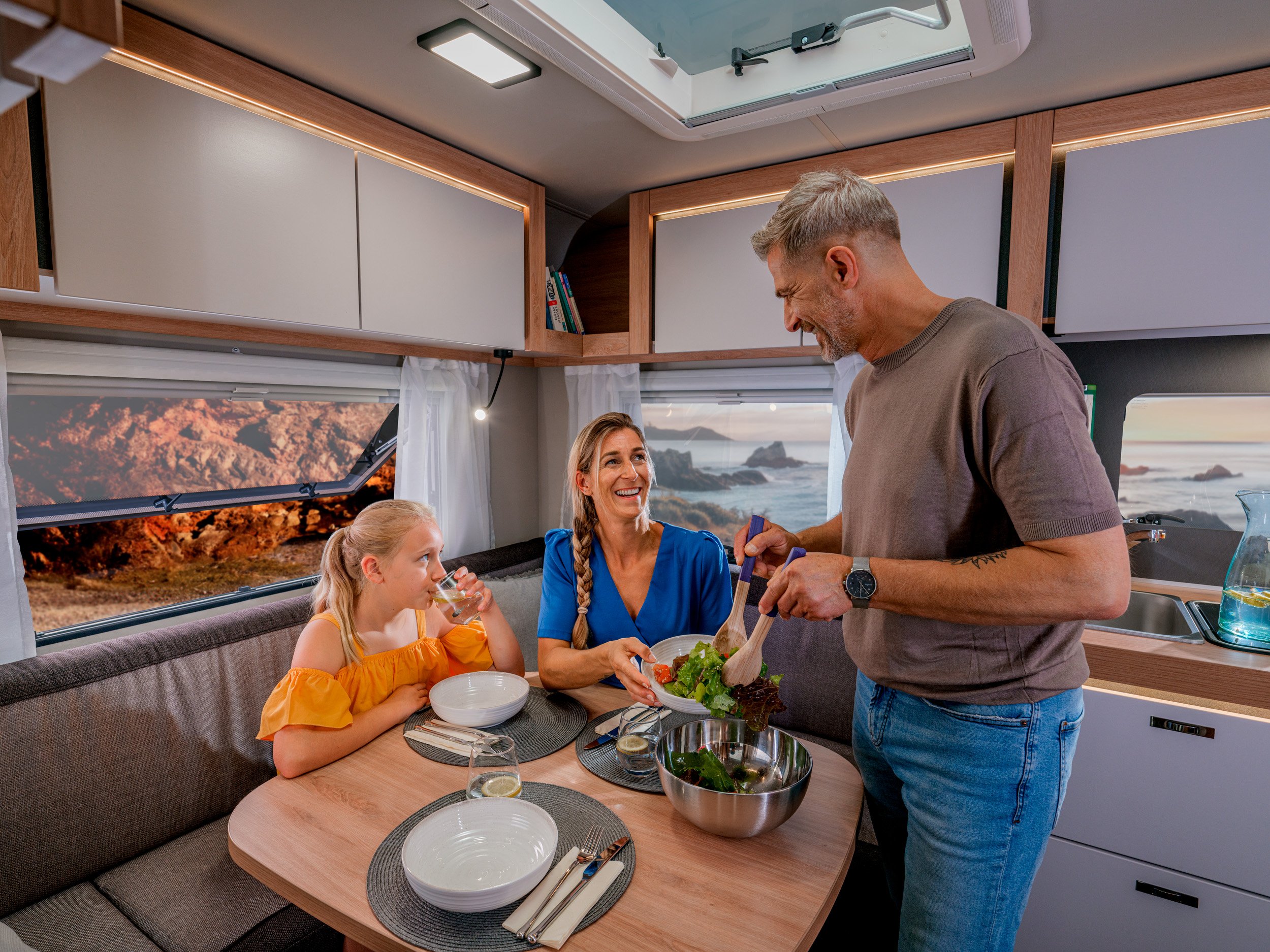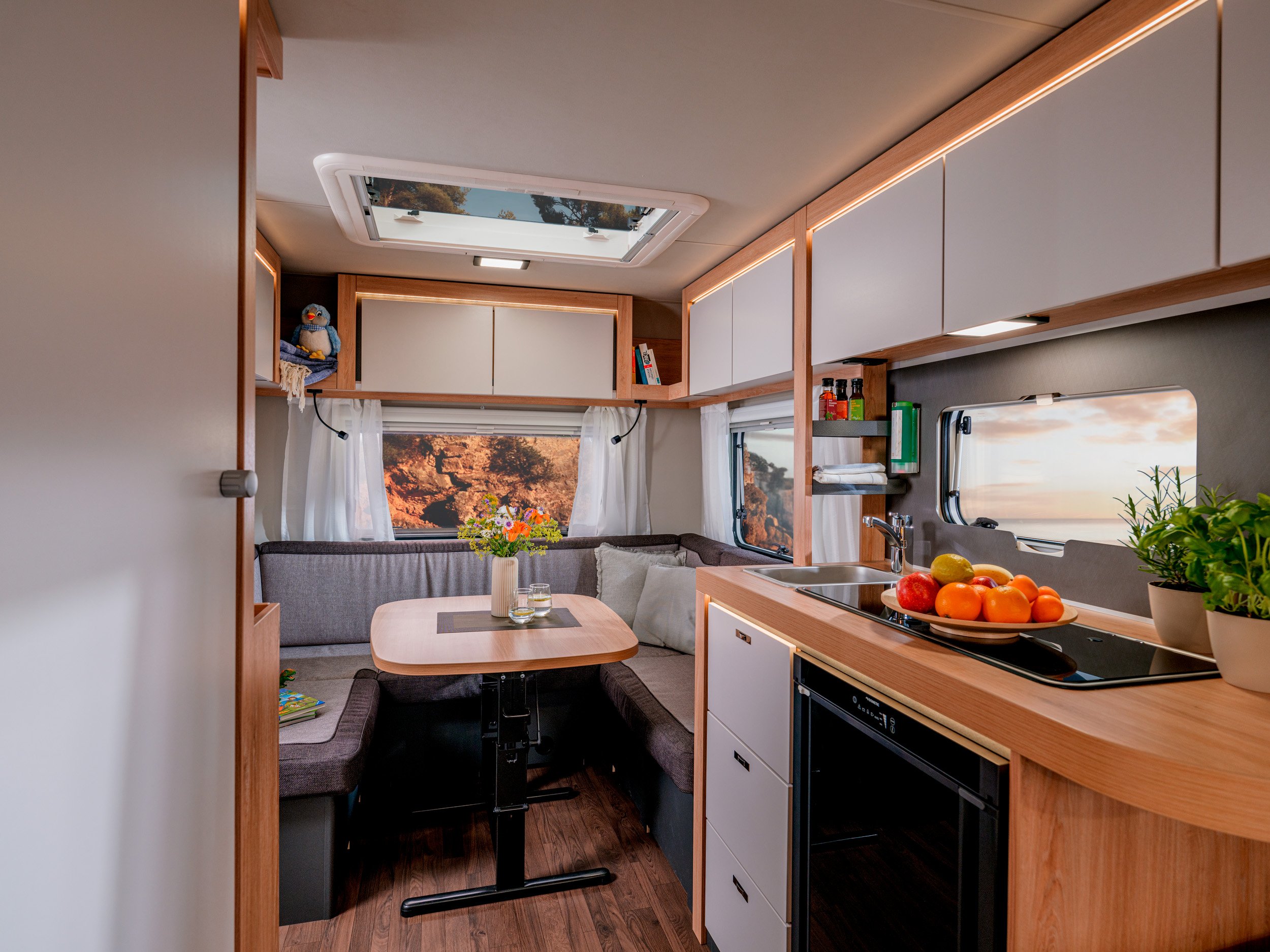 Knaus Sportissa yhdistyvät tilavuus ja käytännöllisyys, mikä takaa viihtyisän ja toimivan matkailukokemuksen.